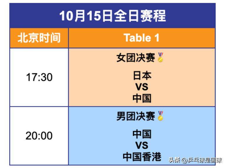 亚锦赛10月15日直播赛程:国乒冲两冠!女团战日本!男团对阵香港斗鱼 - 每个人的直播平台【官方指定平台】
