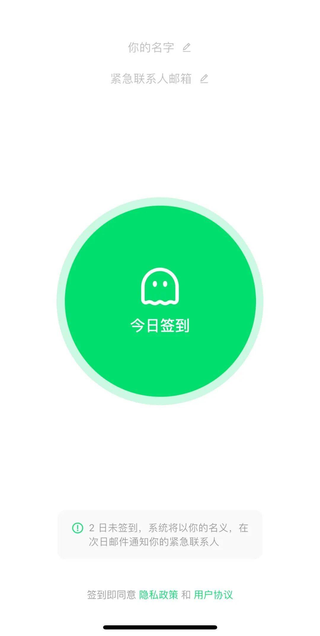 据介绍,该应用是为独居人群打造的轻量化安全工具,用户需要设置紧急联系人并签到,若连续多日没在应用内签到,系统将于次日自动发送邮件告知紧急联系人。