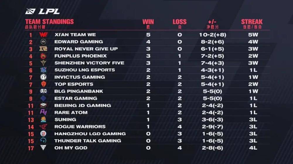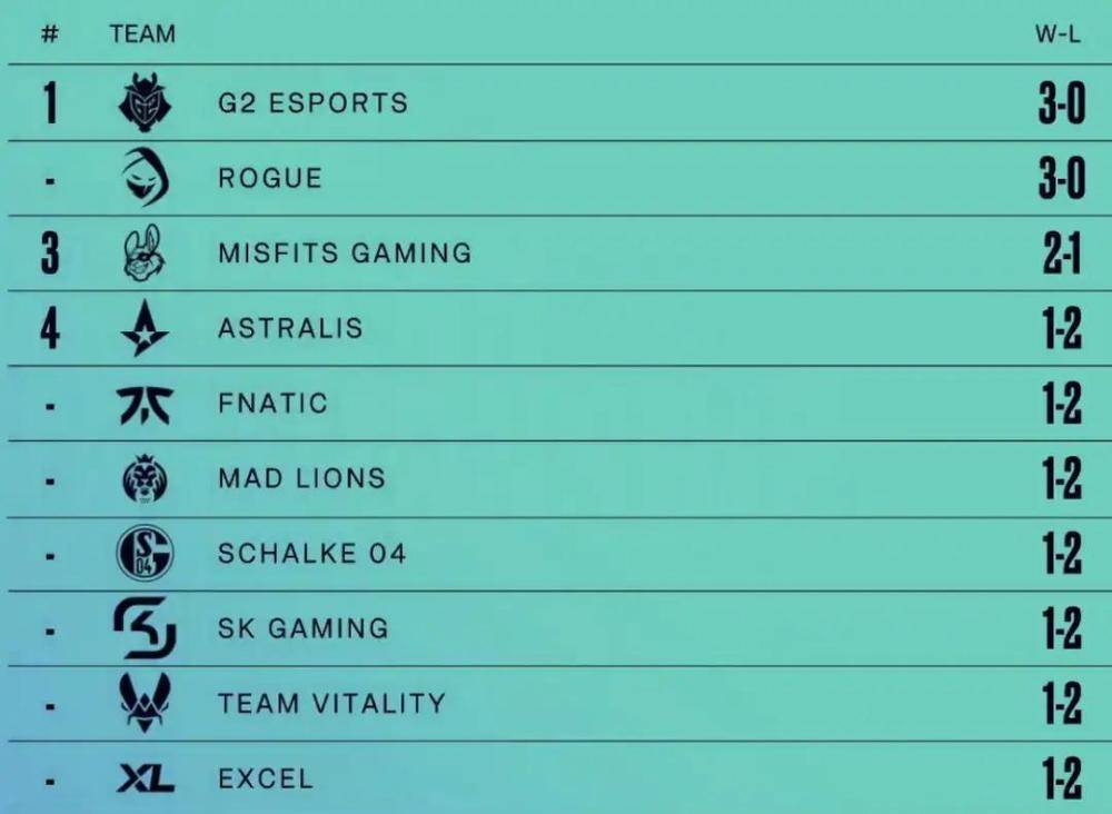 再来看欧洲赛区这边,才开赛一周,因为赛制是BO1,进展很快。其中G2在从FNC挖来欧成后,实力有又变强了,几场比赛中都展现出高人一等的宰制力,汇聚欧洲最强双C的G2今年又要独霸欧洲赛区了。紧随其后的ROG就算今年LEC三号种子,队员都很年轻,也有了大赛经验,未来可期。而作为G2的老对手FNC,开赛后打的并不顺利,以一胜二负战绩排名倒数,看来失去欧城后的FNC实力已经大不如从前。1Y8中国电竞网