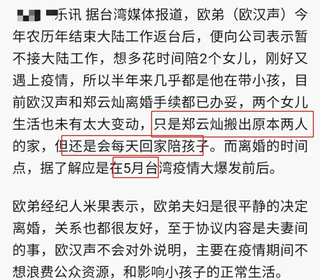据台媒爆料,欧弟与郑云灿离婚手续都已办妥,而离婚时间点也早在5月前后。目前女方已经搬离原本的家,双方是和平离婚,关系也很友好。