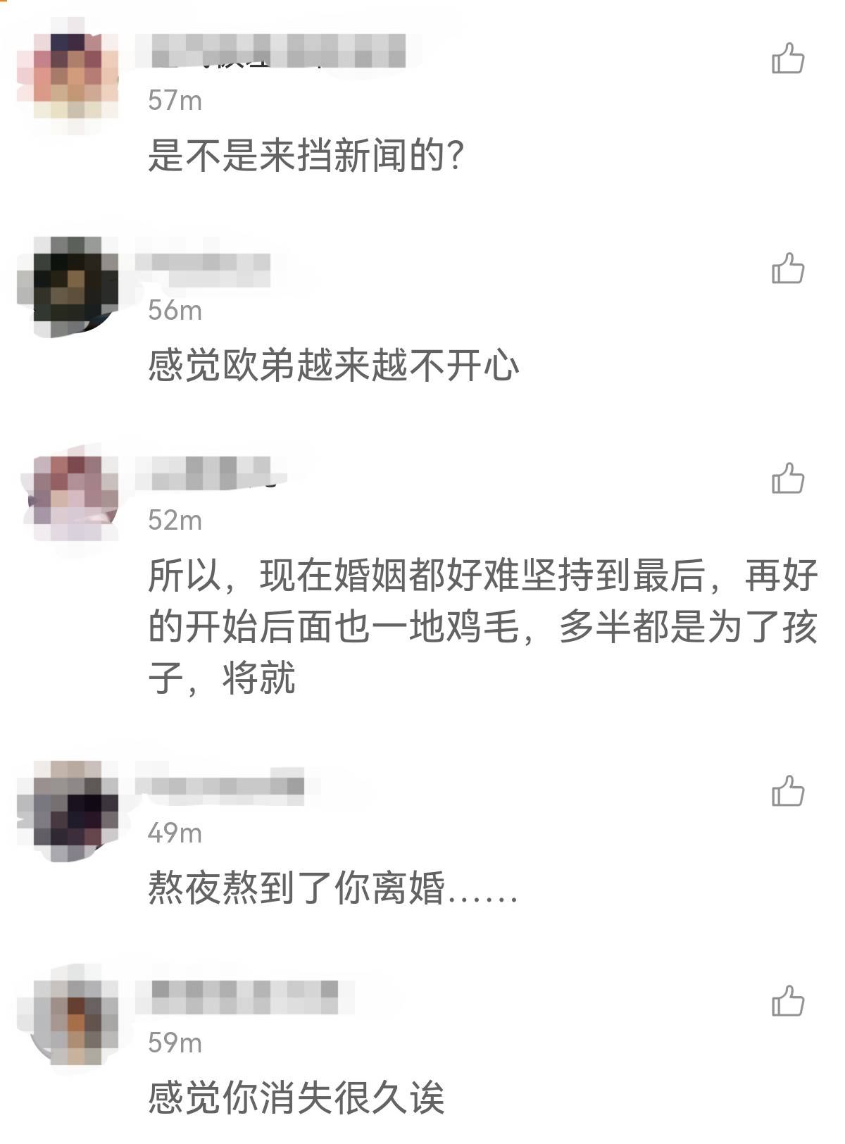 不少网友看到消息后觉得欧弟似乎消失很久了,也似乎越来越不开心。所以现在的婚姻坚持到最后都挺难的,几乎都是为了孩子将就。