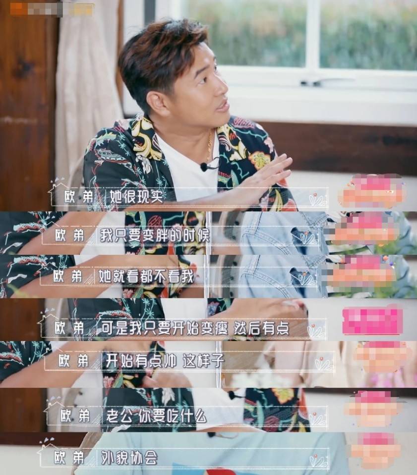 节目中,欧弟也毫不客气当着镜头的面吐槽妻子很现实,称自己变胖的时候,她看都不看自己,话也不跟自己讲。可是只要自己开始变瘦变帅,她马上会问:‘老公,你要吃点什么?’很外貌协会。
