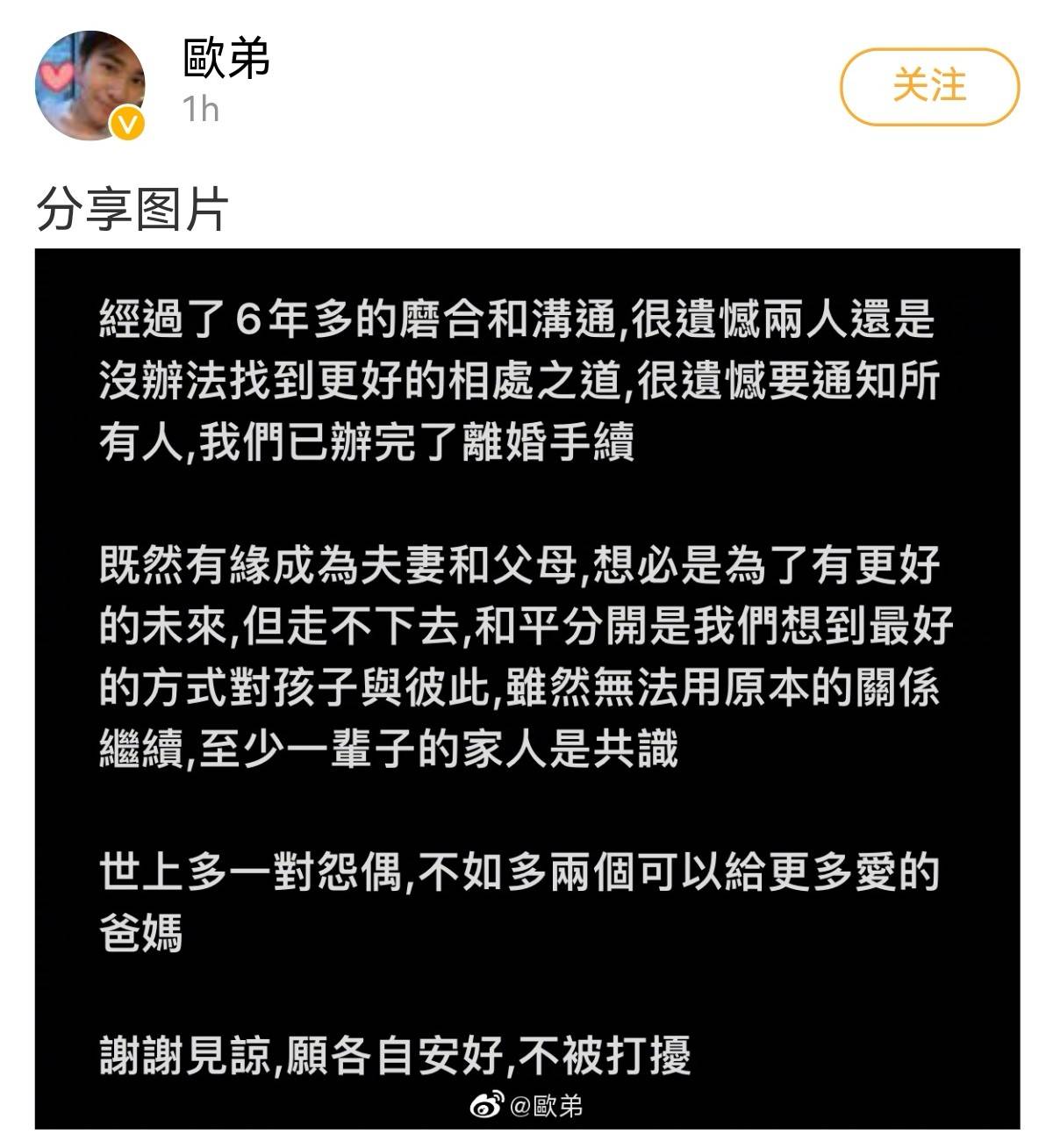 2026-04-09斗鱼,斗鱼直播,斗鱼APP,游戏直播,电竞直播,手游直播,lol直播,英雄联盟直播,dnf直播,cf直播,绝地求生直播,王者荣耀直播,二次元直播,英雄联盟,绝地求生,和平精英,魔兽世界,三角洲欧弟发文表示“经过了6年多的磨合与沟通,很遗憾两人还是没办法找到更好的相处之道,我们已经办理好离婚手续了,和平分开是我们想到最好的方式对孩子和彼此”。