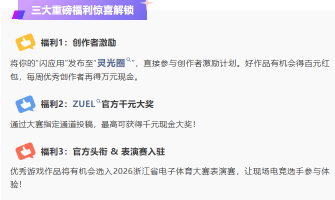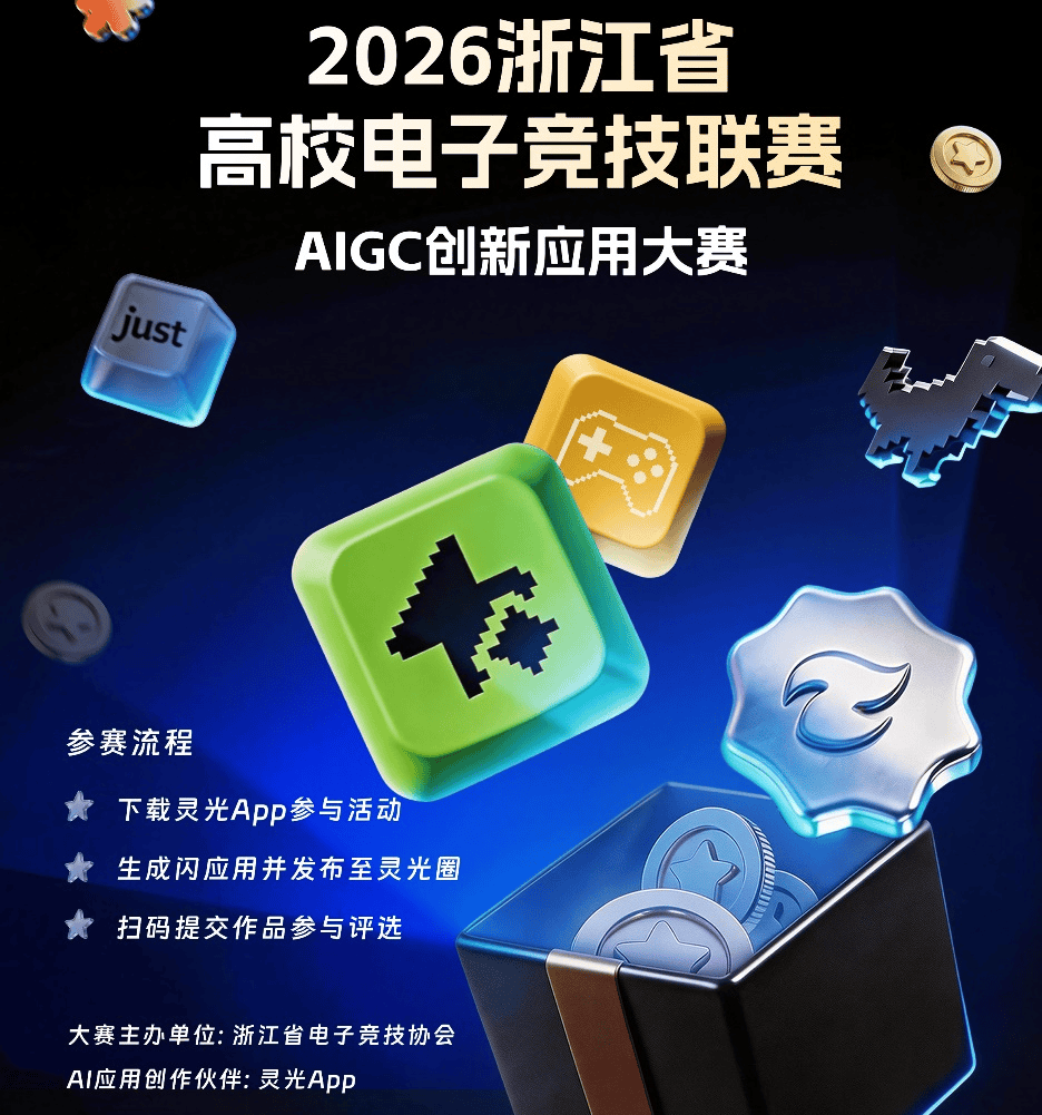 本次赛事由浙江省电子竞技协会牵头主办,依托 ZUEL成熟赛事IP影响力,结合灵光 App轻量化创作能力,打破技术壁垒,让广大青年学生无需专业编程、设计基础,仅凭文字描述、图片素材,即可快速一键生成电竞主题交互应用,轻松参与数字创意创作。